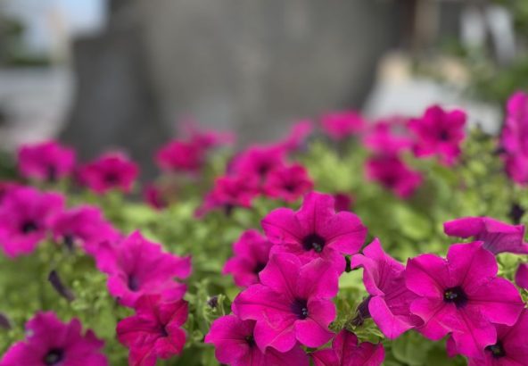 花に見守られる