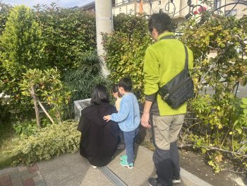 市内にお住まいのご家族が来園され、霊園に到着するとお子さまが