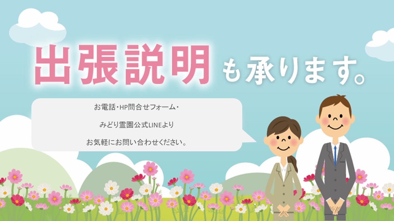 お電話・HP問合せフォーム・みどり霊園公式LINEより、お気軽にお問い合わせください。