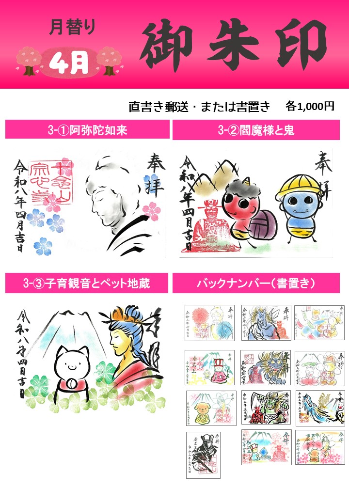 【書置き】4月宗心寺ご朱印4-③ 子育て観音とペット地蔵